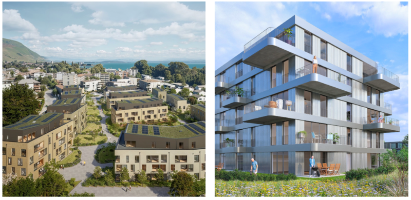 Bei beiden entstehen oberirdisch autofreie Ökoquartiere mit hoher Aufenthaltsqualität. Ein Drittel der Wohnungen ist ausschliesslich für Seniorinnen und Senioren vorgesehen und bietet unter anderem unterstützende Dienstleistungen für den Alltag.